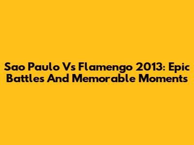 Sao Paulo Vs Flamengo 2013: Epic Battles And Memorable Moments