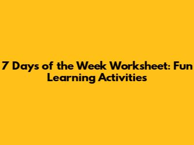 7 Days Of The Week Worksheet: Fun Learning Activities