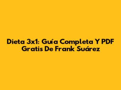 Dieta 3x1: Guía Completa Y PDF Gratis De Frank Suárez