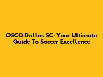 OSCO Dallas SC: Your Ultimate Guide To Soccer Excellence