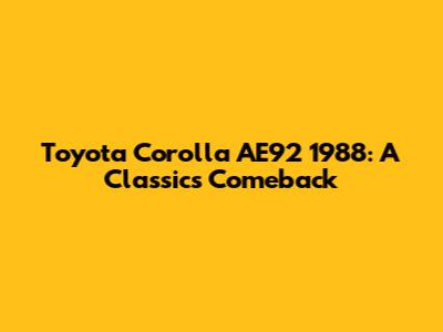 Toyota Corolla AE92 1988: A Classic's Comeback