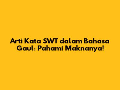 Hey, guys! Pernah dengar kata "SWT" diucapkan sama temen atau lihat di postingan media sosial? Pasti penasaran dong, apa sih arti kata "SWT" dalam bahasa gaul itu? Nah, pas banget nih kalian nemu artikel ini. Kita bakal kupas tuntas arti kata "SWT" yang lagi hits banget di kalangan anak muda. So, siap-siap ya buat nambah wawasan per-bahasa-gaulan kalian!