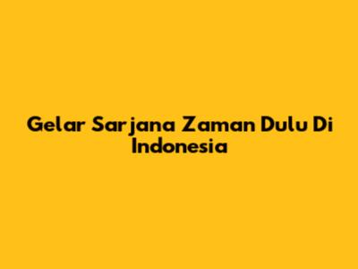 Gelar Sarjana Zaman Dulu Di Indonesia