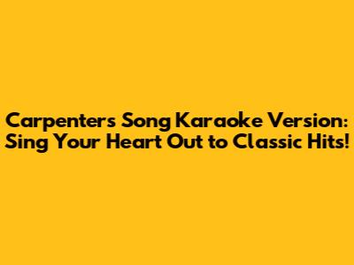 Hey there, karaoke enthusiasts and Carpenters fans! Are you ready to dive into the world of melodic tunes and heartfelt lyrics? If you're looking for the perfect way to enjoy the timeless classics of the Carpenters, then you've come to the right place. In this article, we'll explore everything you need to know about finding and belting out your favorite Carpenters songs in karaoke version. So, grab your microphone and let's get started!