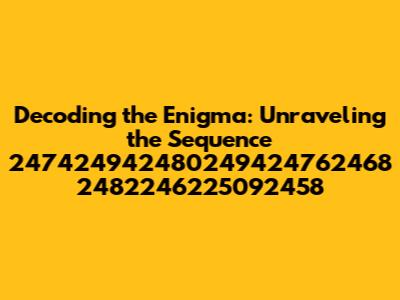 Alright, guys, let's dive straight into the fascinating world of number sequences! We've got a bit of a beast on our hands today: 247424942480249424762468 2482246225092458. It looks like a random jumble, but trust me, there's almost always some kind of logic, pattern, or hidden meaning lurking beneath the surface. Our mission? To crack the code and make sense of this numerical puzzle. Number sequences, in general, are more than just random digits strung together. They are the language of mathematics, statistics, and even the natural world. Understanding these sequences can help us predict trends, optimize algorithms, and even appreciate the beauty of numerical order in what seems like chaos. Think of the Fibonacci sequence – a simple yet elegant pattern found in everything from sunflower spirals to the stock market. So, why should you care about deciphering something like 247424942480249424762468 2482246225092458? Well, for starters, it's a great mental exercise! It sharpens your pattern recognition skills, boosts your logical thinking, and gives you a sense of accomplishment when you finally figure it out. Moreover, in many real-world scenarios, such as data analysis, cryptography, and even certain types of engineering, recognizing and understanding number sequences is crucial. You might be surprised how often these skills come in handy. So, buckle up, grab your thinking caps, and let's embark on this exciting journey of decoding the seemingly indecipherable! Remember, even if the sequence appears daunting at first, persistence and a systematic approach can reveal its secrets. Let's get started and see what we can uncover!