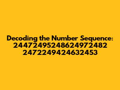 Let's dive into this intriguing number sequence: 24472495248624972482 2472249424632453. At first glance, it might seem like a random jumble of digits, but who knows? Maybe there's a hidden pattern, a secret code, or some interesting mathematical property lurking beneath the surface. In this article, we're going to break down this sequence, explore potential ways to interpret it, and see if we can uncover anything meaningful. So, buckle up, number enthusiasts! We're about to embark on a numerical adventure that might just surprise you.
