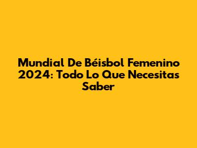 Mundial De Béisbol Femenino 2024: Todo Lo Que Necesitas Saber
