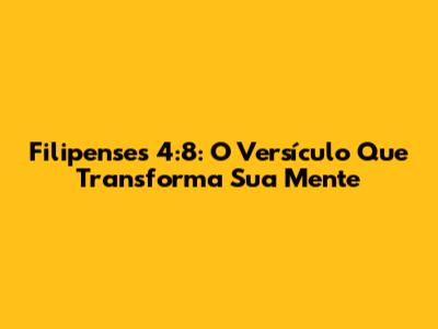 Filipenses 4:8: O Versículo Que Transforma Sua Mente