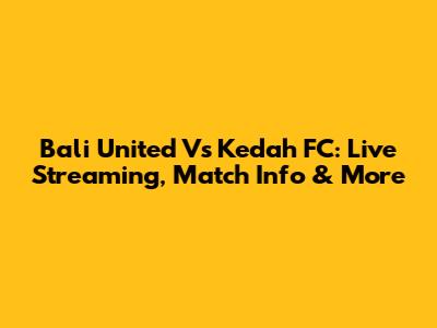 Bali United Vs Kedah FC: Live Streaming, Match Info & More