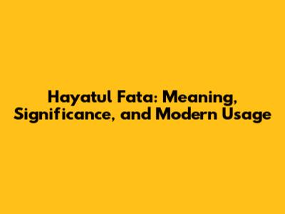 The Origins and Cultural Significance of Hayatul Fata