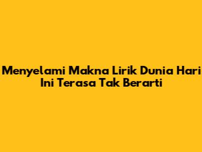 Menyelami Makna Lirik 'Dunia Hari Ini Terasa Tak Berarti'