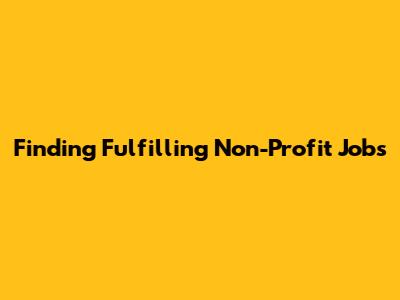 Finding Fulfilling Non-Profit Jobs