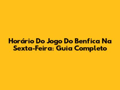 Horário Do Jogo Do Benfica Na Sexta-Feira: Guia Completo