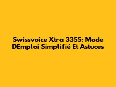 Swissvoice Xtra 3355: Mode D'Emploi Simplifié Et Astuces