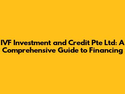 Hey guys! Let's dive into the world of finance, specifically focusing on IVF Investment and Credit Pte Ltd. This isn't just about throwing some money around; it's about understanding how they operate, what services they offer, and most importantly, how you can leverage their offerings to your advantage. Finding the right financial partner can be a game-changer, whether you're a budding entrepreneur, a seasoned business owner, or someone looking to manage their investments wisely. This guide will break down everything you need to know about IVF Investment and Credit Pte Ltd, making sure you're well-equipped to make informed decisions.