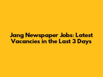 Hey guys! If you're on the hunt for a new career gig and love keeping up with the freshest opportunities, you've landed in the right spot. Today, we're diving deep into the latest job openings posted in the Jang newspaper, specifically focusing on what's hit the stands in the last three days. You know how it is – the job market moves fast, and sometimes, the best gigs disappear faster than free pizza at a tech conference. That's why staying updated with resources like the Jang newspaper is super crucial. We'll be breaking down where to find these opportunities, what kinds of roles are typically advertised, and some pro tips on how to snag that dream job before anyone else. So, grab your coffee, settle in, and let's get this job-hunting party started!