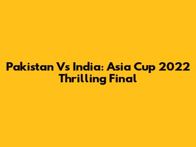 Pakistan Vs India: Asia Cup 2022 Thrilling Final