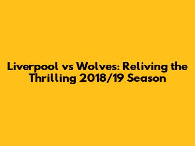 Liverpool Vs Wolves: Reliving The Thrilling 2018/19 Season