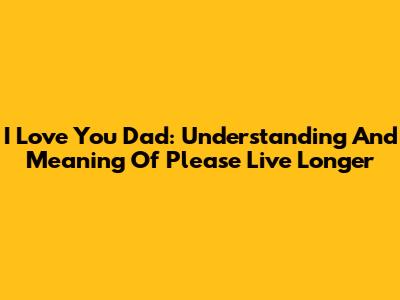 I Love You Dad: Understanding And Meaning Of 'Please Live Longer'