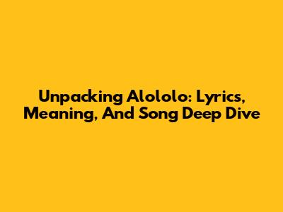 Unpacking 'Alololo': Lyrics, Meaning, And Song Deep Dive
