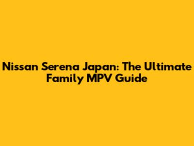 Nissan Serena Japan: The Ultimate Family MPV Guide