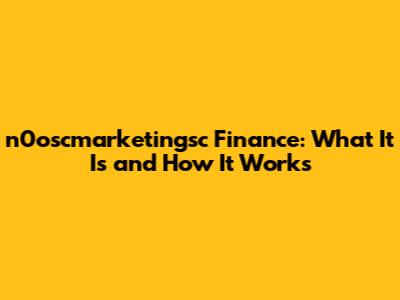 N0oscmarketingsc Finance: What It Is And How It Works