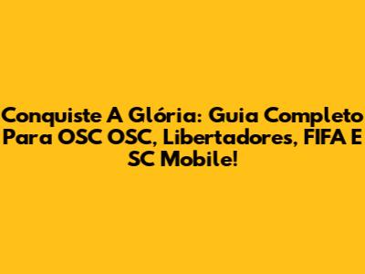 Conquiste A Glória: Guia Completo Para OSC OSC, Libertadores, FIFA E SC Mobile!