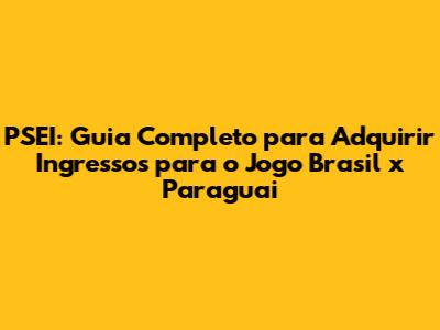 A compra de ingressos para o jogo Brasil x Paraguai, e para outros jogos da Seleção Brasileira, geralmente é realizada por meio do site oficial do PSEI (Programa Sócio Esportes de Ingressos) ou por meio de plataformas de venda de ingressos autorizadas pela CBF. O processo de compra pode variar dependendo do jogo e da demanda, mas geralmente envolve algumas etapas.