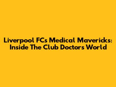 Liverpool FC's Medical Mavericks: Inside The Club Doctor's World