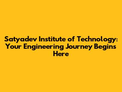 Satyadev Institute Of Technology: Your Engineering Journey Begins Here