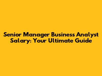 Senior Manager Business Analyst Salary: What You Need To Know