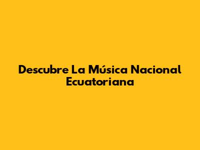 Descubre La Música Nacional Ecuatoriana