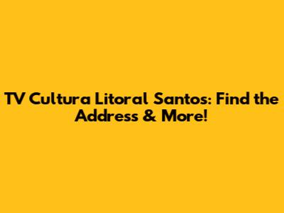 Hey guys! Ever wondered where TV Cultura Litoral Santos is located? Or maybe you're just curious about this awesome TV station? Well, you've come to the right place! Let's dive into everything you need to know about TV Cultura Litoral Santos, including its address and a whole lot more. Get ready for an informative and fun ride!