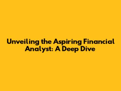 Unveiling The Aspiring Financial Analyst: A Deep Dive
