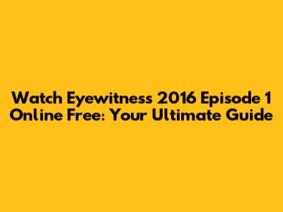 Hey guys! Ever stumbled upon a show that just pulls you in from the very first scene? That’s Eyewitness for you, and today we're diving deep into how you can catch the thrilling first episode of the 2016 season online, completely free! If you're new to this gem or looking to rewatch, you're in the right place. We'll cover all the best ways to stream Season 1, Episode 1, making sure you don't miss a single suspenseful moment of this captivating crime drama. Get ready to settle in, because this is one episode you won't want to pause.