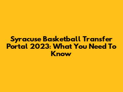 Syracuse Basketball Transfer Portal 2023: What You Need To Know